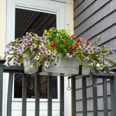 - STURDY AND LONG-LASTING: This flower box is made of galvanized steel with a whitewashed patina finish; Wrought iron Railing Brackets are finished with Black powder coating for maximum weather resistance
