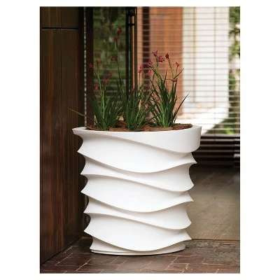 Bring a touch of modern flair to your indoor or outdoor garden by displaying a plant in the 26-inch Wavy Square Planter from Crescent Garden. This planter features a unique waved design with a slightly squared shape for a modernized look. The double-wall feature helps protect your plant’s roots when the temperature changes, while the lightweight construction makes it easy to move it from room to room. Whether you have a green thumb and you grow your own leafy plant, or you opt for the fuss-free route with an artificial alternative, this modern planter will look right at home in your entryway, living room, patio or home office.