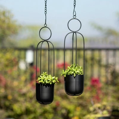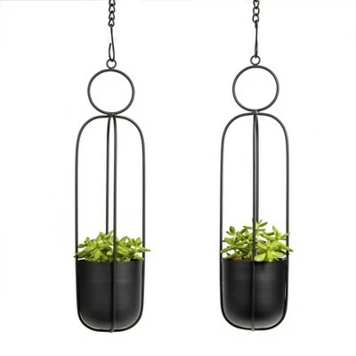 The Danya B. 2-Piece Iron Hanging Planter Set – Black is a great way to bring a touch of greenery into your living space. Crafted from metal with a simplistic wire metal design, this understated hanging planter set is just what you need to breathe new life into your home, office, balcony, or patio. Hanging brackets allow easy wall or ceiling installation for effortless relocation whenever you wish to redesign.