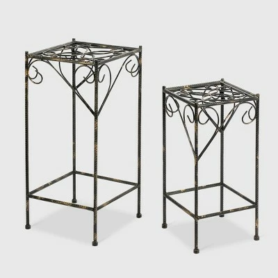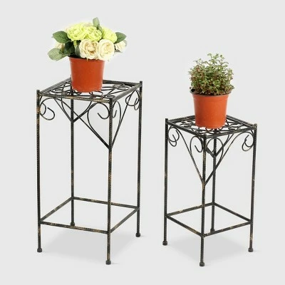 Use the 21.06, 26.18″H Set of 2 Modern Celtic Clover Designs Square Slender Leg Patio Plant Stand to lift your blooms and add different aspects to your display. Four legs have simple straight forward appeal wrought iron look made from cast iron material. The Sides have a modern fleur-de-lis casted on each sides. Plant stand has an option for Home Improvements that you be able to spray paint the color you wanted for your plant stand. The black powder-coated cast iron will last for a long time outdoors. The Flowers Plant Stand combines simple footed legs with a decorative Clover leaf work top, reminiscent of the Celtics pattern from the medieval times. Will support a small to a 9″ round pot to an 11″ pot containers. Lovely Plant Stand set in cast iron will display your favorite potted plant in style. Measures 10.24″L X 10.24″W x 21.06″L & 12.21″L x 12.21″W x 26.18″H.