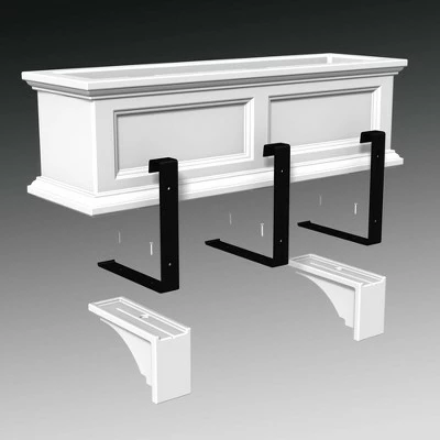 - Decorative brackets attach easily to the existing wall mount brackets that come with the Fairfield/Cape Cod window boxes.