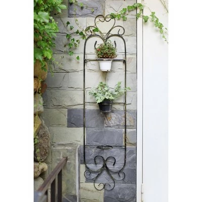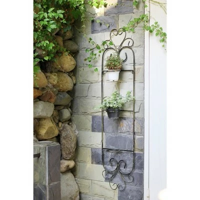 The scrolling 4.8-ft. Cast Iron Trellis Wall Planter is not merely a decoration for your garden; it’s also a declaration of your good taste and style. The cast iron trellis is made with tough powder-coated iron and features a frame of 3 pot holders measures 6″Dia, located in the centerpiece which is naturally resistant to rotting and insects. Use to hang against the side of your house to instantly transform a blank space into an accent wall overflowing with climbing plants and flowering vines. You will love this Trellis cast iron wall hung planter with all its simplistic scroll work. The scroll work pattern sits flush to the wall away from the pot holders, perfect for adding cling vines to decorate all over the hung planter. Whether you use it to prop up your flowering plants and vines, or just to add visual variety and interest to a garden, the this Trellis Wall Planter got you covered. The delicate curves and flourishes are reinforced by tough powder-coated iron, topped off with a black and gold for neutral elegance.