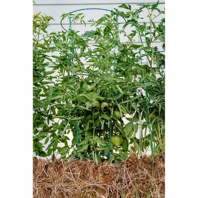 Give your tomatoes and other vining plants the support they need to grow with the Glamos Wire 54 in. heavy duty evergreen tomato cage. Plants that grow inside a cage utilize the sides of the cage to support the stems and need fewer ties. Just place one plant inside the cage and guide the stems through as they grow. This tomato cage is ample enough to help keep even the largest tomato plants contained and under control without blocking sunlight or rain, but be sure to keep plants growing tall and off the ground for better air circulation. The large openings make harvesting easy and its galvanized finish makes it reusable season after season. This cage can be used in a garden bed, raised garden, or for container gardening while the orange color can help with organization of different plants while also giving an aesthetic look to your garden. These cages are easy to take out at the end of the season and are stackable within each other for easy storage.