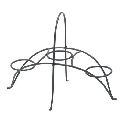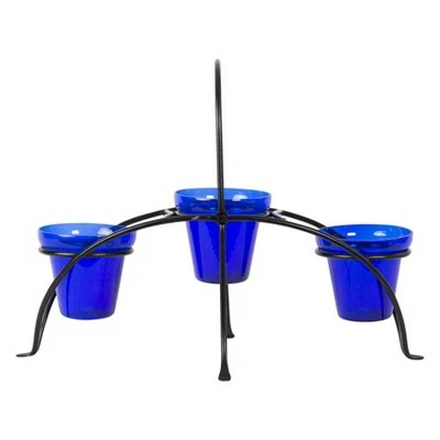 The Achla Designs wrought iron Herb Caddy makes an excellent addition to any home, patio, balcony, porch, or terrace garden. This sturdy footed stand features three rings designed to fit three cobalt blue glass flowerpots. The basket-style carrying handle allows for easy transport and a decorative style. Ideal for small spaces, place this herb caddy in your kitchen, next to a window, or outside on a balcony or patio table or in the garden. Wherever you use it, this stand will allow you to grow and enjoy fresh herbs with ease. Whether the stand is used indoors or outdoors, its classic design also works well with orchids, violets, succulent or cactus plants. As a centerpiece, place fresh cut flowers or candles in the three pots, or decorate the stand with silks and other seasonal decorations. Achla Designs makes a full line of plant stands for indoor and outdoor use in many shapes and decor styles. See our full line of plant stands and fine garden accessories for every patio and porch.