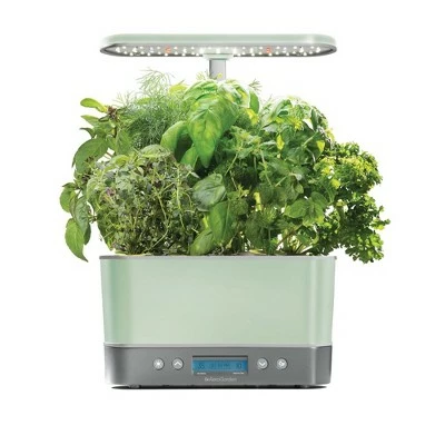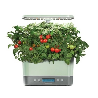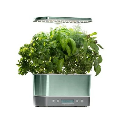 Grow up to 6 different herbs, veggies or flower varieties all year long – no sun, no soil and no green thumb required. The AeroGarden Harvest Elite has a compact shape, sleek stainless-steel finish and a super easy control panel with digital display making it perfect for any kitchen. Have fresh flavors right at your fingertips no matter what the weather is like outside. The Harvest Elite’s grow light hood contains 20 watts of white, red and blue LED lights, giving your plants the full spectrum of sunlight they need to grow, and grow quickly! Plants grow 5X faster than in a traditional outdoor garden. And the automatic timer makes sure the lights go on and off at exactly the right time. The garden adjusts for up to 12″ of grow height and the digital display reminds you when to add water and our patented liquid plant food so keeping your plant babies happy and thriving is never a problem. Plus with vacation mode, your garden will stay healthy while you rack up some travel miles. The Harvest Elite literally sets up in minutes, so you can get back to pinning all the recipes you’ll soon be making with your amazingly fresh herbs and veggies. Just drop the included seed pods in your garden, fill the bowl with water and some plant food, plug it in and you’re good to go! Want garden fresh tomatoes in the dead of winter? No problem! How about beautiful petunias for months on end with no florists fee? Done and done. And if you ever get a seed pod from our 70+ varieties that doesn’t sprout, just give us a call! We have a germination guarantee and will get a new seed pod in the mail to you lickety split. So get growing!