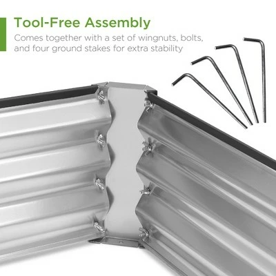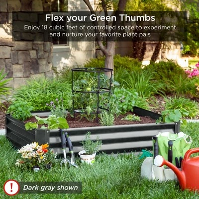Create the perfect micro-environment to support any plant under the sun and enjoy 18 cubic feet of controlled space to experiment and nurture your favorite plant pals. An open base supports soil drainage, prevents leaching, and helps maintain soil health and balance. Made with powder-coated steel plates to withstand wear from the elements. A tool-free assembly means it comes together with a set of wingnuts, bolts, and four ground stakes for extra stability. Whether for herbs, flowers, succulents, or veggies, this planter is the perfect option to grow, grow, GROW!