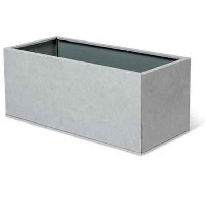 - Made from a unique, multi-layered process used in architectural applications, this rectangular metal planter is made to last. It’s chic, sturdy, and deep enough for root crops. Ships flat and assembles quickly.