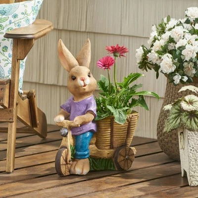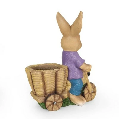 Does your garden need a little help? Our decorative planter is on the way. From its playful rabbit design to its cast stone structure, this planter will instantly enhance your patio or backyard space with style. This accessory offers a durable construction to ensure that your plant has a stable home to grow. Featuring an adorable rabbit riding bicycle with a basket, this planter offers a lighthearted look to your garden or porch. Including a drainage hole, this planter is the perfect accessory for your green thumb.