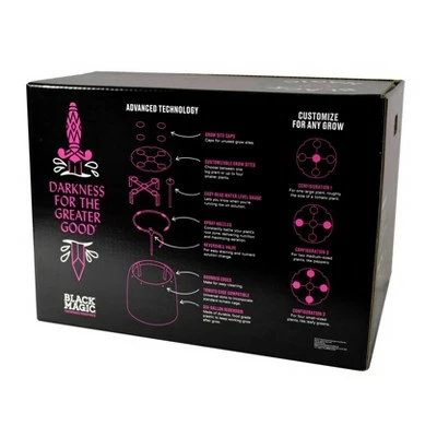 The Black Magic Grow Pail is a recirculating hydroponic system aimed at giving every grower, no matter what level of experience, the tools to grow big. Compatible with most liquid nutrient regiments, the Black Magic Grow Pail is the foundation for your successful at home growing. Designed to grow a variety of plant types (large or small) and can be used outdoors or inside with the help of grow lights. Grow forth!