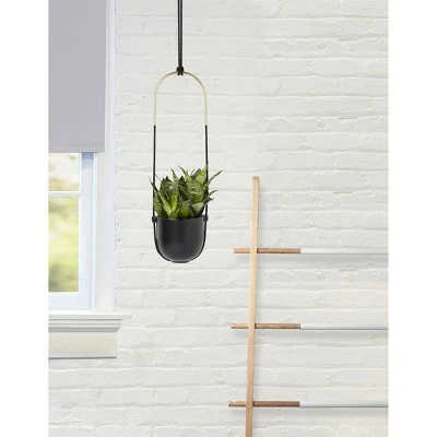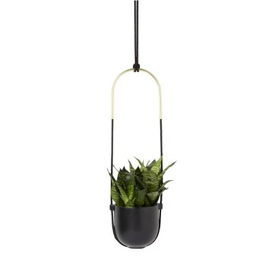 - DESIGNED BY SIMONE FERKUL FOR UMBRA: Made of durable black ceramic, BOLO has a partially brass-covered holder rope. The entire planter measures 6 inches diameter, and 43 inches in height (with the rope). Holds up to 6 lbs