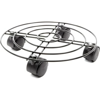 This is a 4 pack of iron metal plant caddies with wheels and a small wrench for easy assembly. These iron caddies are ideal for transporting and moving potted plants, garden pots, large vases, or whiskey barrels. Each silver-tone caddy with black wheels measures approximately 10.6 inches diameter.Product names are trademark of listed manufacturer or other owners, and are not trademarks of eForCity Corp. The manufacturer does not necessarily endorse use of these products.