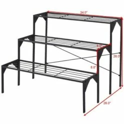 This is our 3 tiers flower plant display stand. Made of durable and durable steel construction with a sleek black finish, this 3 tier display rack complements any home decor and provides the perfect to display decorative items. You can place your favorite potted plants or your shoes, handbags and other items on it. The modern style and the beautiful appearance will decorate your home, deck, or patio. It brings both style and storage to any space. Specification: Material:steel. Weight:11lbs. Product size:34.0”x 26.0”x26.0”(L x W x H). The height of plate:10.0”/18.0”/26.0”. The width of plate:9.0”. Weight capacity of each tier:66lbs. Package includes:1 X 3 Tier Shelf Flower Plant Display Stand Rack.