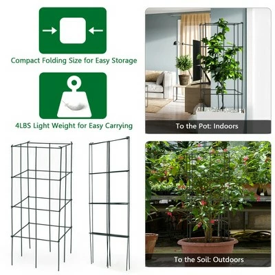 As a planting talent, you can’t miss this tomato stand!Are you still worrying about withered growth or the bending stem of plant? Our tomato stand will provide you with a more scientific and healthier growing ways for your plant! Whatever you want to plant, jasmine, beans, grapes, peppers, or roses, this support cage is here right for satisfying all your needs! There’s no denying that the structure would stand up still during severe weather or strong wind. Help yourself to enjoy DIY garden and stay closer to nature! Specification: Color: Dark Green. Material: Iron. Dimension: 16” x 16” x 39” (L x W x H). Net Weight of Each Cage: 3 lbs. Package includes:. 4 x Tomato Cages.