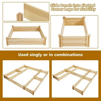 Do you want to cultivate some plants in your garden or balcony? Our planter raised bed is your ideal choice. Made of high-quality natural fir wood, this garden bed ensures sturdy and durable structure for long-term use. Consisting of five planter boxes, it provides ample growing area for your plants. With this raised bed, it is convenient to take care of plants and the boxes can be freely combined to satisfy your different needs. With this helpful planter, you can cultivate plenty of plants, vegetables, fruits, and flowers. Besides, the garden bed with rustic style matches well with your garden, patio, backyard, etc. It is also easy to assemble the garden bed by following steps. Specification: Color: Natural. Material: Fir Wood. Overall Dimension: 92.5”(L) x 95”(W) x 11”(H). Inner Dimension of Large Box: 45.5”(L) x 45.5”(W) x 9”(H). Inner Dimension of Small Box: 45.5”(L) x 21.5”(W) x 9”(H). Net Weight: 46.5lbs. Package includes:. 5 x Planter Boxes. 1 x User Guide.