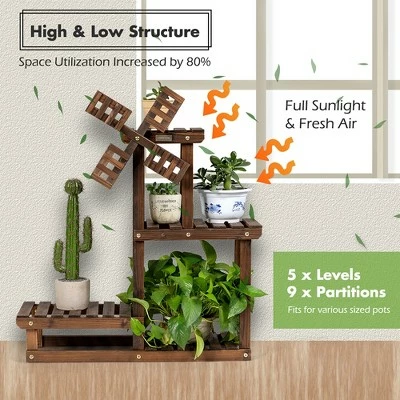 - Rustic Windmill Decoration: Rustic style garden plant pot shelf features detachable windmill add a touch of vintage vibe to your home décor. And it can be used as a multiple storage display shelf for sundries, decoration, books, in living room, bedroom, garden, balcony, yard, patio, etc. Also it is a best holiday gift for garden lovers.