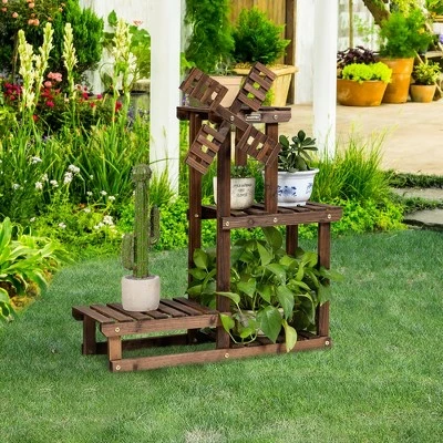 - Indoor & Outdoor Fir Wood stand: This plant display stand with multiple-tiers is made from natural fir wood that is super sturdy. 4 layers of exhibition space turn your beautiful garden into a plant paradise with multiple plants. Let it become an eye-catching spot in any room that bring visual pleasant for people who meet the nature scenery.