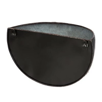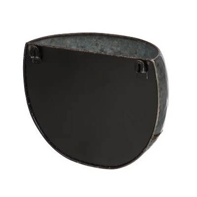 Create an elegant oasis in any space with these galvanized metal wall planters. Not only will the pieces enhance your mood and environment, but they will also add a pop of nature to your decor and emit a striking vintage vibe. Versatile enough to be used for an ornamental garden as well as an edible planting, the set’s decorative and functional appeal will elevate an indoor or outdoor area. Crafted from dark galvanized metal with faux brass solder detail, the duo includes both a large and small planter. Liners not included. Two hooks on the back of each planter allow for easy hanging.