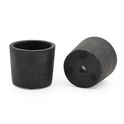 - Black Cement Planter: Grow a wide variety of herbs, succulents, and flowers in these round cement planters that feature a dimpled design and contrasting wood draining tray