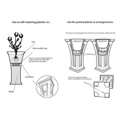 - Can be used as a self-watering planter or for as a place to put your pre-potted plats