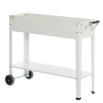 Plant your flowers, plants, herbs or vegetables with this raised bed mobile planter. This planter is ideal for flowers, trees, and plants to complement your outdoor dcor. Elevated bed design for convenient planting. Composed out of durable metal that is sturdy and weather resistant. Large interior storage capacity accommodates various types of plants. Bottom shelf holds accessories and garden tools handy. Features, holes at the bottom for convenient plant care and prevents waterlogging. Additionally, rolling wheels and side push handle make carrying around more practical.