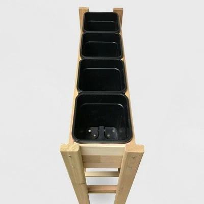 - Contains 4- 7.5″ Square x 7″ Deep removable heavy duty plastic pots – plastic liners protect wood from rotting