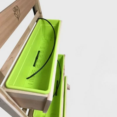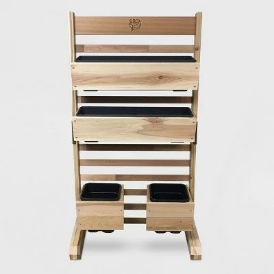 The GRO Products Vertical GRO System may have a small footprint, yet it will change the way you garden in a big way. With the Drip Irrigation System, you will GRO-more, and water LESS ! This Irrigation kit is specially sized for all VGS products. To water your garden with ease, simply follow the assembly directions and attach the garden hose. The VGS is quick and easy to assemble-it only takes a few minutes. The VGS is constructed right here in the USA with unfinished Cedar. The kit includes 1 Irrigation System, a set of 4 casters and 2 removable 24-inch-wide and 2 removeable 8″ square planter boxes that can be adjusted on the VGS to accommodate different plant heights. Included with each VG Box are removable, heavy duty plastic liners. These plastic liners provide a barrier between the soil and cedar. And here’s a helpful hint: you can remove the plastic liners and conveniently plant them on your potting table. Cubic foot of soil needed: 1.73. VGS provides 5.88 linear feet by 6 inches wide planting space. All assembly hardware is included. VGS overall measurement is approximately 28” wide by 48” High.