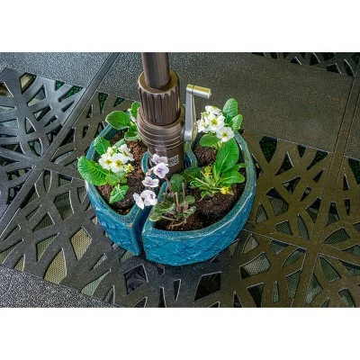 - 2 HALF MOON ROUND SHAPED UMBRELLA PLANTER: Plant fresh herbs or flowers in this stylish two half moon-shaped umbrella planter with textured Atlantis blue finish, that fits around standard umbrella poles up to 2″ diameter