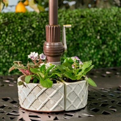 - 2 HALF MOON ROUND SHAPED UMBRELLA PLANTER: Plant fresh herbs or flowers in this stylish two half moon-shaped umbrella planter with textured crema finish, that fits around standard umbrella poles up to 2″ diameter