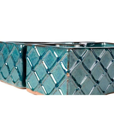 - 2 HALF SQUARE SHAPED UMBRELLA PLANTER: Plant fresh herbs or flowers in this stylish two half square-shaped umbrella planter with textured Atlantis blue finish, that fits around standard umbrella poles up to 2″ diameter