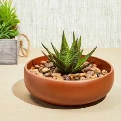 - DIMENSIONS: Diameter 0.6 in., height 0.75 in.; pot trays in terracotta color