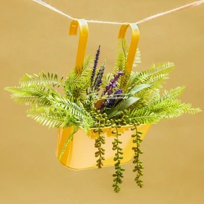 These colorful planters are perfect for displaying artificial flowers and plants on your wall, in your garden, or backyard. The colorful vases are durable thanks to the premium metal construction. The decorative wall planters come with 2 sturdy handles for functionality and aesthetics to hang from your railing or fence.Product names are trademark of listed manufacturer or other owners, and are not trademarks of eForCity Corp. The manufacturer does not necessarily endorse use of these products.