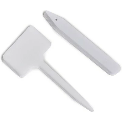 - Plant Labels: Easily write on the white plant labels with permanent marker or pen; ink will not fade or wash off in the rain or sunshine; set includes 50 peat pots, 15 square plant labels, and 15 label sticks