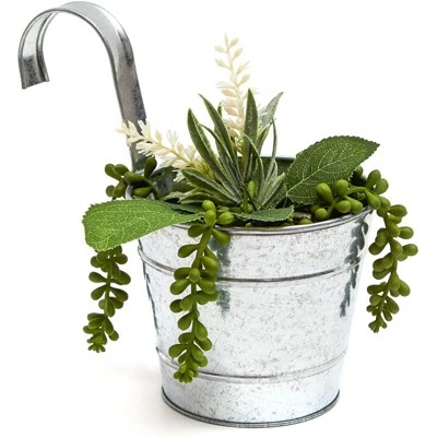 These galvanized wall planters featuring a hook are perfect for displaying artificial flowers and plants on your wall, fence, garden, or backyard. The vintage-themed vases are durable thanks to the premium galvanized steel construction–perfect for country or farmhouse home decor! The decorative wall planters come with sturdy handles for functionality and aesthetics to hang on railing or fencesProduct names are trademark of listed manufacturer or other owners, and are not trademarks of eForCity Corp. The manufacturer does not necessarily endorse use of these products.
