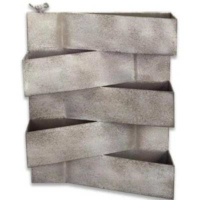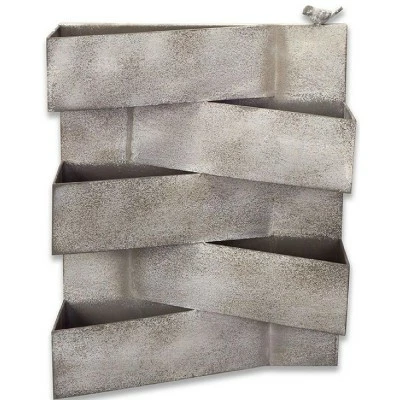 Provide an authentic natural charm to your indoor with this geometric abstract planter in which you can place your floral arrangements. This casual yet majestic planter lends an extraordinary look to your desk or any random space. It offers a grand statement to your interiors.Product Features:Gray layered geometric planterEmbellished with layered metal trianglesPlanter with a bird on the cornerAdd presentation to your garden decor with this unique planterComes ready to hang on a wallRecommended for both indoor and outdoor useDimensions: 21″ high x 16” wideMaterial(s): metal