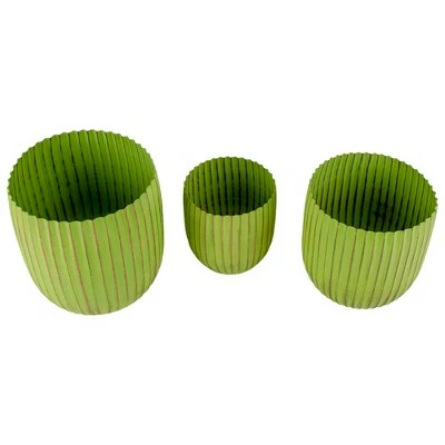 These gorgeous planters would be the perfect addition to your home. Perfect to plant real or faux flowers in. Features:These planters have a textured pattern Comes with 1 small, 1 medium and 1 large planter Perfect to place on any tabletop in your homeDoes not feature drainage holesRecommended for indoor use only Dimensions: Small planter: 4.5” high x 4.25” in diameter Medium planter: 5.5” high x 5.5” in diameterLarge planter: 6” high x 6.25” in diameterMaterial(s): metal
