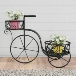 Add vintage flair to your home or garden with the Nature Spring Tricycle Plant Stand. This lightweight metal stand features two round shelves to display your floral arrangements or plants prominently. With shelves that are situated above the ground, it makes it easy to care for your plants without moving them elsewhere to drain after watering.