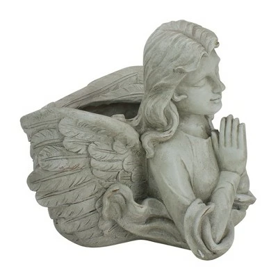 Wrap these angel wings around your favorite flower, herb or plant. This planter that depicts a praying angel will add serene beauty to your home, patio or anywhere you place it. The detailed wings create the round planter. This planter is meticulously hand sculpted by highly skilled artisans with rich attention to detail. You can use this little memorial planter anywhere as a remembrance of a loved one. Truly makes a thoughtful gift for a friend or family member who has lost someone special.Product Features:Praying Angel bust garden planterWings wrap around back to create round planterHand sculpted by skilled artisansFor indoor or outdoor useDimensions: 10″H x 10″W x 11″DMaterial(s): resin/stone mix
