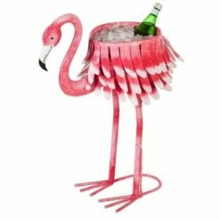 Evergreen Beautiful Springtime Brushed Metal Flamingo Shaped Drink Chiller and Planter – 26x11x31 in