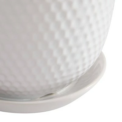 Whether you set them on a window ledge or a patio side table, this trio of planters will keep your favorite plants safe and secure. With their crisp, white design, the planters are a perfect match for contemporary, modern, or minimalistic spaces. A hammered design adds an appealing texture, while a saucer on the bottom collects excess water. The set features three different planter sizes so you can grow leafy friends of any size.