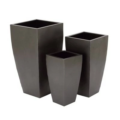 Operate on the variation in pot size and depth of this 3-in-1 set of geometric metal planters for contemporary and modern interior designing. The simplicity of the exteriors can match with dim color palettes, muted patterns, and less tactile textures. These tall structures don’t have stands or drainage holes but can still accentuate a corner of your living space. All carry a weather-proof iron construction that allows them to be used both indoors and outdoors. Fill with faux plants indoors where you want some green but don’t get a lot of light or display on your deck to bring bold Contemporary style to your outdoor space Wipe clean with a dry cloth. CONTEMPORARY STYLE: Tall, gray metal indoor & outdoor planters with contemporary silhouettes. Suitable for indoor and outdoor use Pots do not have drainage holes. Each set comes with 3 tapered planters. Contemporary design. This item comes shipped in one carton.