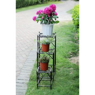 Add a classy touch of refinement when you decorate your home with this set of plant stands. Perfect for small potted plants, this Gray Stone Slab Square Plant Stand Set of 3 is made of cast iron with a rich, powder coated black and gold finish and features 2 square surfaces for displaying plants and other items. Showcase your green thumb indoors with this neat and tasteful plant stand. With two shelving where the Gray Stone Slab sits, your plants and flowers will have a reliable but beautiful place to rest. Display them atop this gorgeous, black and gold plant stand or showcase some of your other decorative favorites. This plant stand is a great addition to indoor and outdoor spaces allowing for optimal display of potted plants. Flower pot stand is perfect for any den, living room, nook, or patio. Slender and space-saving, they’re a natural in sun rooms, living spaces and more.