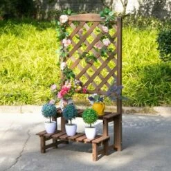 Do you enjoy flowers and plants but don’t have suitable space at home? The raised flower bed stand from Outsunny successfully solves your problem. The two-layers of shelves on this planter stand provide good sunshine for your plants to grow in order. The trellis frame of this garden stand can be used to hang vines and flowerpots, which is a nice decoration. Also, you can put your small tools on the plant display, which helps save space and provides an easy place in your garden to put your tools. The solid wood frame and the carbonized color is suitable for everywhere in your home or backyard. Choose this flower plant display and show your flowers to your heart’s content.