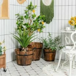 Costway Outdoor Wooden Wishing Well Bucket Flower Plants Planter Patio Garden Home Decor