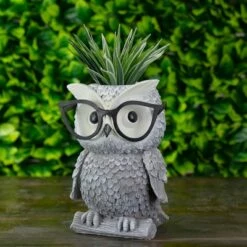 Place this owl-shaped planter in your outdoor to add a touch of whimsy. Truly alluring, it is a sheer piece of versatility. Use this to adorn your lawns or patios and witness the magic it delivers.Features:Features a whimsical owl wearing silly spectacles, giving meaning to the phrase “A wise old owl” Designed with exquisite attention to detail, this unique planter will liven up any space in your home or garden Recommended for both indoor and outdoor use Comes with gift boxed Dimensions: 9.25″H x 7.25″W x 7″D Material(s): resin/stone mix