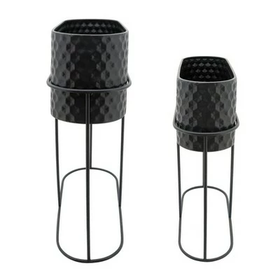 Set of 2 metal planter with an oval shape and hexagon hammered design. It has a non-glossy finish and sits on a tall stand. This beautiful piece will be a great addition to your living room or entry way.Sagebrook Home has been formed from a love of design, a commitment to service and a dedication to quality. They create and import fashion forward items in the most popular design styles. Backed with years of experience in the textile field, They are now providing a complete Home decor story. the combination of wall decor, furniture, lighting and Home accessories are all coordinated with textiles to provide a complete Home look. Sagebrook Home is committed to providing the best Home décor and accent pieces at value prices.