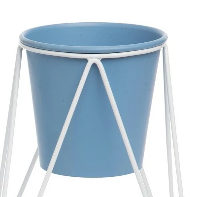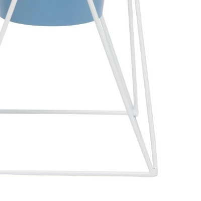 - Style: This set of 2 planters are made from painted blue metal with white geometric wire stands. Perfect for your favorite houseplants!