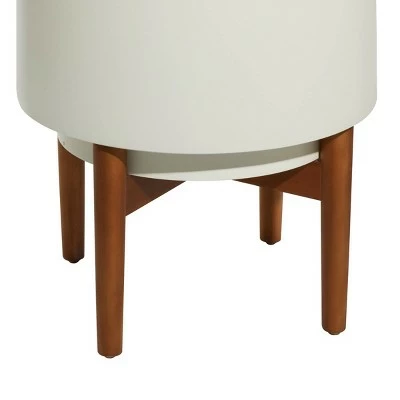 A coastal inspired space is built around the idea of a laid-back, carefree vibe. No coastal space can truly be relaxed without some greenery in this white metal and brown wood round corrugated planter 2-piece set. This wood and metal design features a round metal plant container with a corrugated pattern on the body and rim. The metal part comes in a clean and crisp white finish. The planter stands elevated on 4 wooden legs with an elegant brown finish for its stability and for better water and air circulation for your plants. This will definitely inspire you to add some greenery in your coastal living room, dining room, home office or entry way. Designed with black rubber stoppers at the base that prevent scratching furniture and table tops, as well as sliding around.This planter has no drainage holes.This item ship in one carton