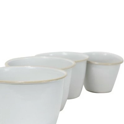 - With a more structural shape, the faux-ceramic enamel finish softens the look of this modern farmhouse item.