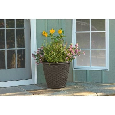 The package includes 2 Suncast Sonora 18-Inch Resin Wicker Planters for the perfect addition to your yard. Built strong with blow-molded plastic, this planter is meant to last. Its lightweight design is easy to maneuver around, so you can have the ideal location for your plant. Invite your family and friends over this year. With this 2-pack of Suncast Sonora 18-Inch Resin Wicker Planters, you’ll hold your plant in style.