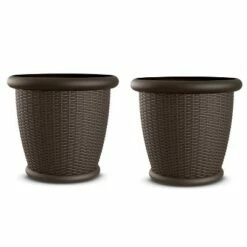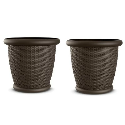 Give your plants a happy home in these 4 Suncast Willow 22-Inch Diameter Resin Decorative Wicker Patio Planter Pots.This decorative resin pot features a contemporary wicker finish and functions as both an indoor and outdoor planter. Designed to retain moisture longer than standard clay pots, this planter is ideal for growing healthy plants. Wherever you put it, this flower or plant pot adds to the ambiance of any indoor or outdoor space.The lightweight construction makes this pot easy to handle, especially when rotating plants. The UV-protected materials ensure that this planter will look nice for several seasons. The 22-inch diameter and 20.13-inch height makes this planter large enough to grow a variety of flowers and plants.The drillable drain-holes in the base let you customize this planter to your needs.Bring some beauty to your home or yard with these 4 Suncast Willow 22-Inch Diameter Resin Decorative Wicker Patio Planter Pots.